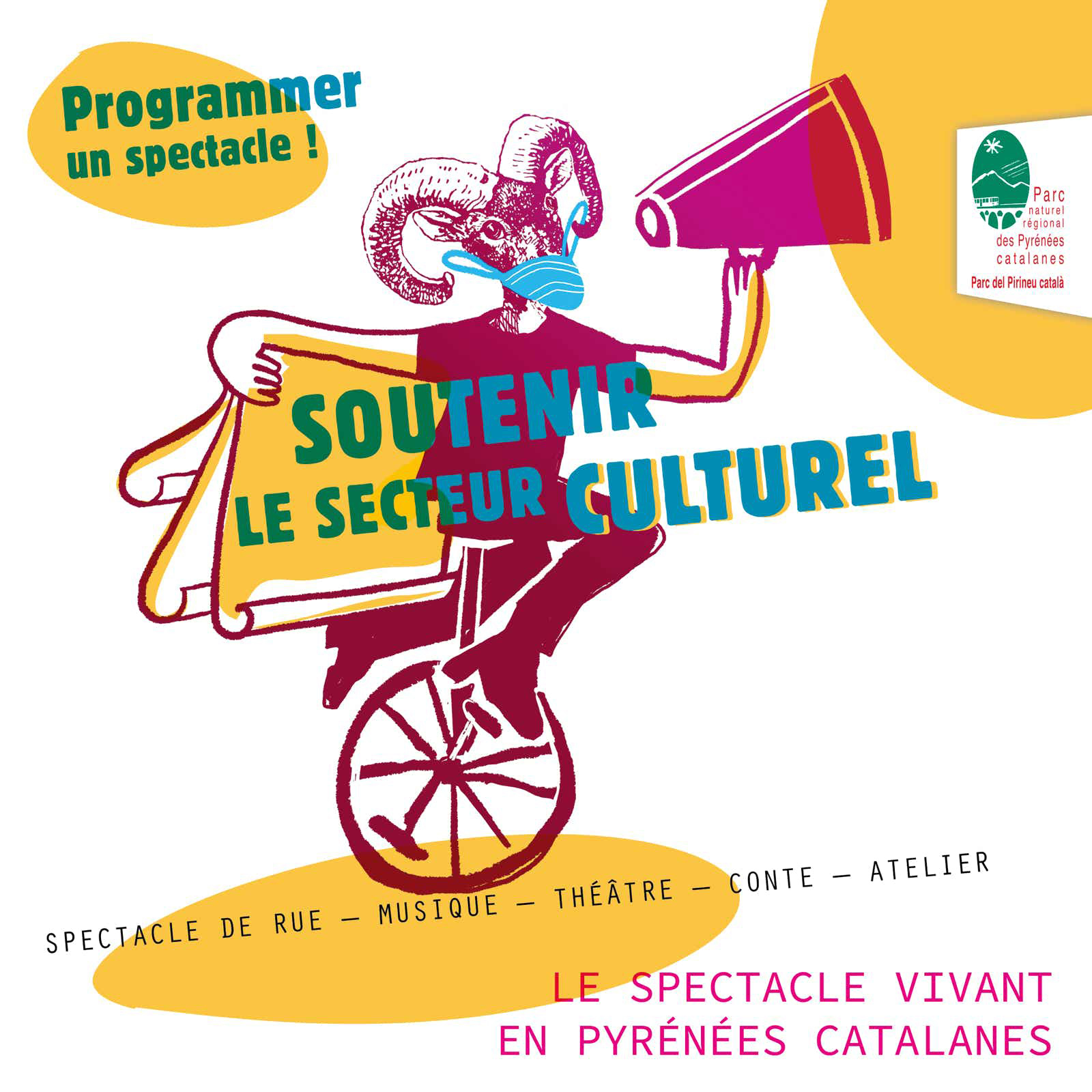 Graphisme de la la brochure de soutien au spectacle vivant en Pyrénées Catalanes pendant la pandémie de Covid19