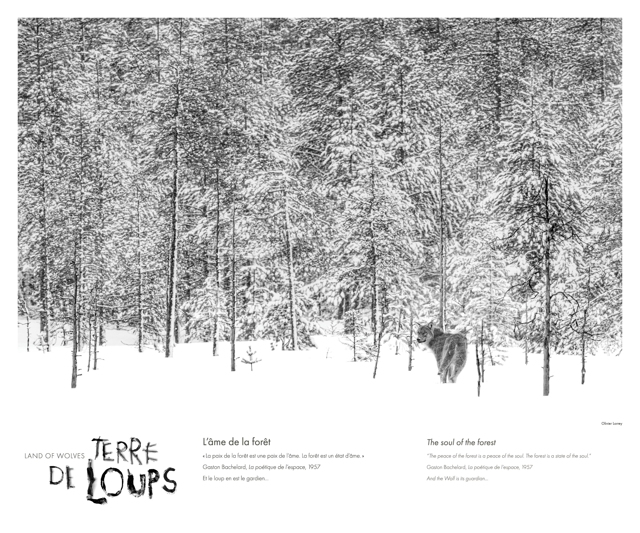Pour l’identité graphique de Terre de loups, j’ai développé une typographie originale, conçue comme une extension directe de l’univers photographique du projet. L’objectif était d’intégrer le texte dans le visuel, non comme une surimpression, mais comme une présence physique, presque organique.