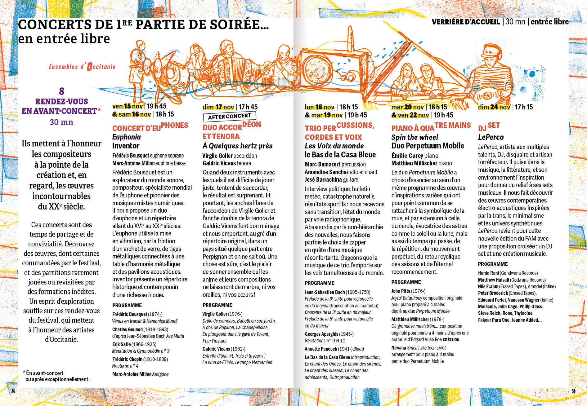 Les compositions graphiques s’inspirent des dynamiques propres à la musique contemporaine : ruptures, silences, densité, spatialisation. Les visuels évoquent des paysages abstraits et vibrants, en résonance avec la programmation du festival.
