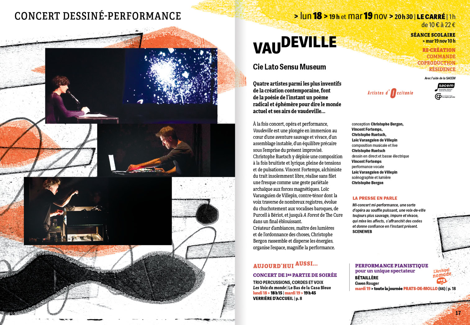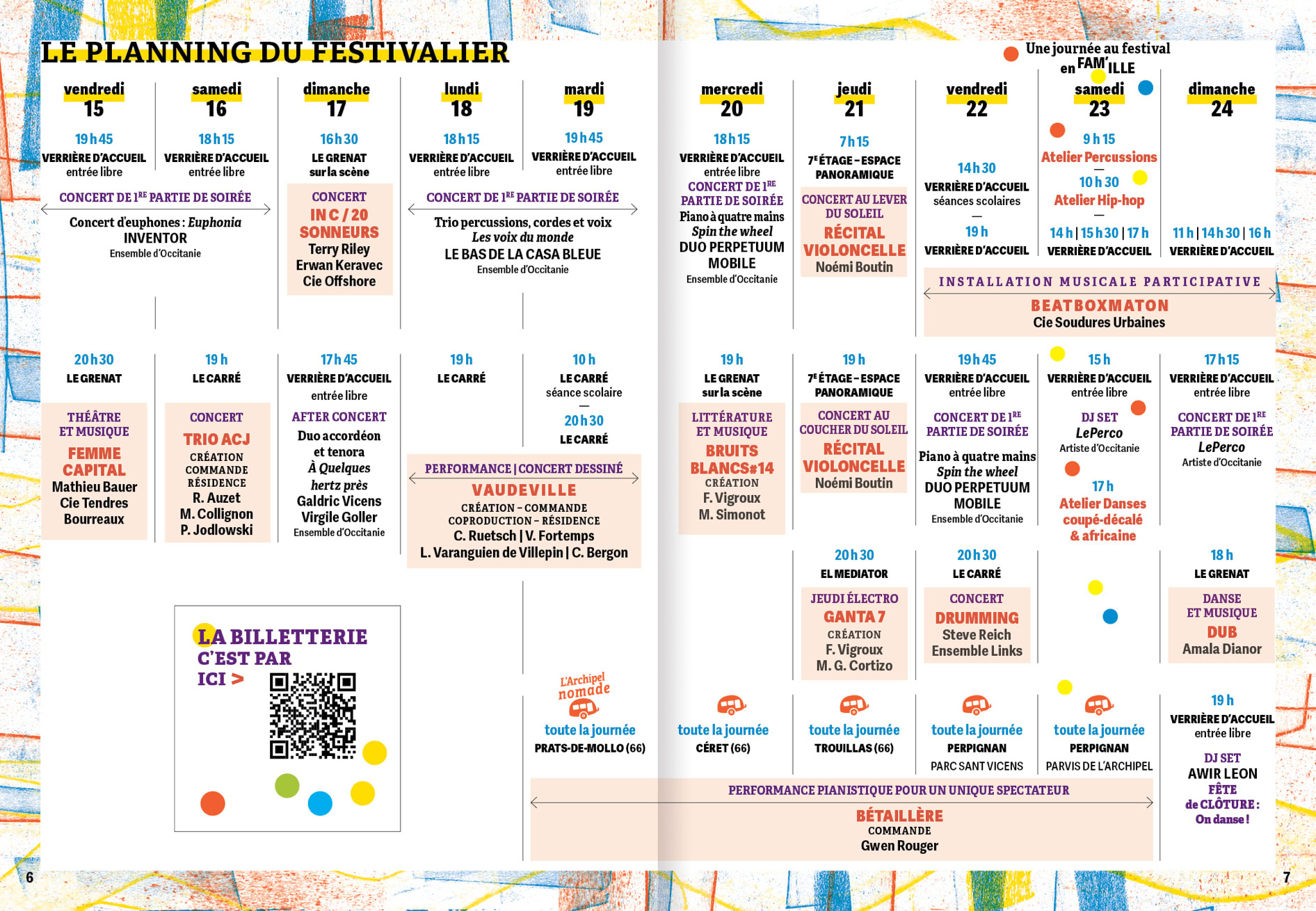 Théâtre de l’Archipel Scène nationale, Perpignan • Visa pour l’Image, Perpignan • musée Aeroscopia, Blagnac • Conservatoire à Rayonnement Régional, Perpignan • Fédération de la Composition - Musiques de Création, Paris • Université de Haute-Alsace, Mulhouse • Centre d’étude et de sauvegarde des tortues marines en Méditerranée, La Grande Motte • Institut Jean Vigo, Perpignan • PNR Pyrénées catalanes, Olette • Éditions EMS, Caen • Musée des 24 Heures du Mans, Le Mans • Argelès Photo Nature, Argelès-sur-Mer • ARS Midi-Pyrénées, Toulouse • Conservatoire du Littoral et Regard du Vivant • Canigó Grand Site de France, Prades • Ville d’art et d’histoire, Perpignan • Ville d’art et d’histoire, Boulogne-sur-Mer, Réserve naturelle marine de Cerbère-Banyuls, Banyuls-sur-Mer • Manatour et aéroport de Toulouse-Blagnac, Blagnac • CAUE des Pyrénées-Orientales, Perpignan • Biodiversarium aquarium, Banyuls-sur-Mer • Biodiversarium jardin méditerranéen, Banyuls-sur-Mer • La Caretta, centre de soins des tortues marines, La Grande Motte • Site archéologique de Ruscino, Perpignan