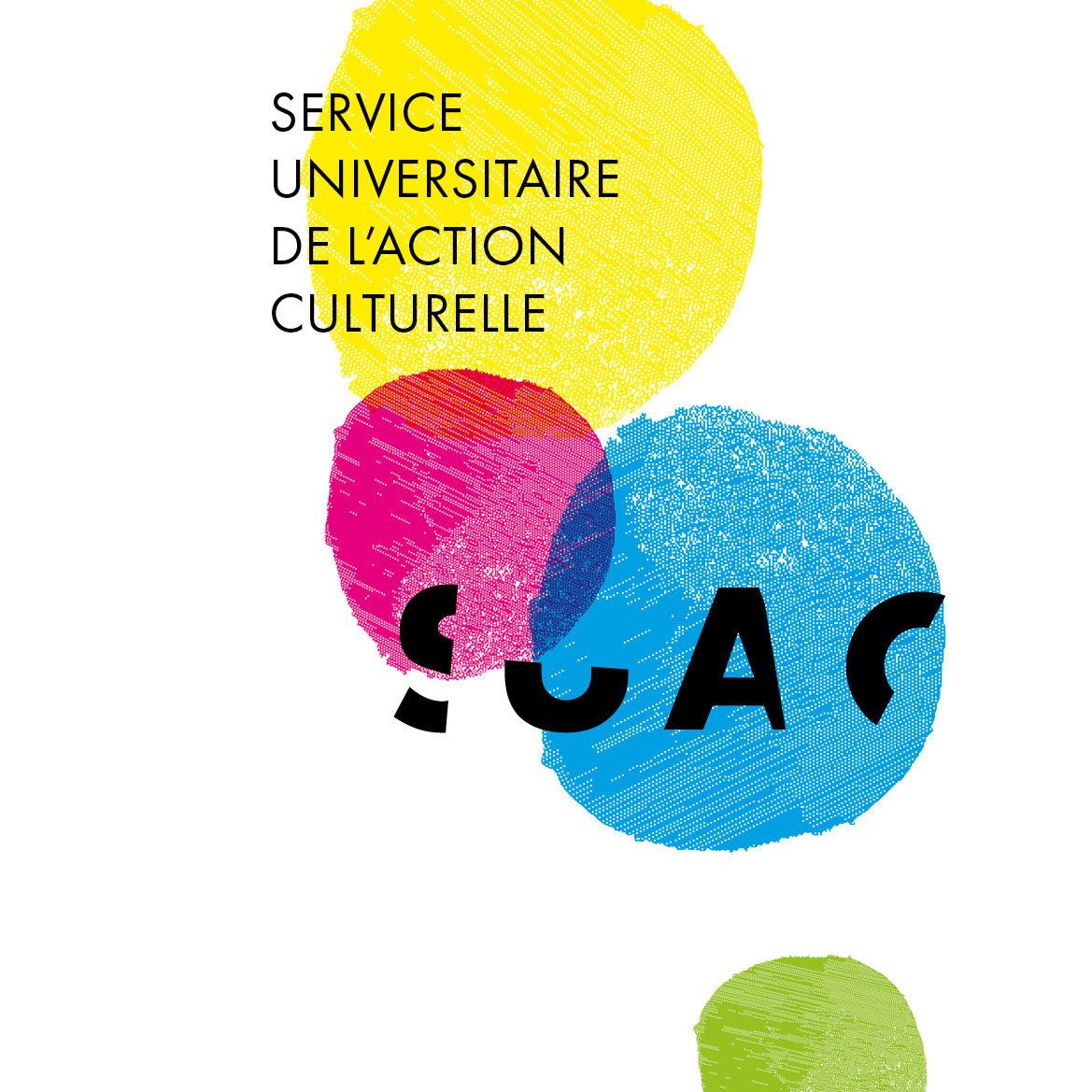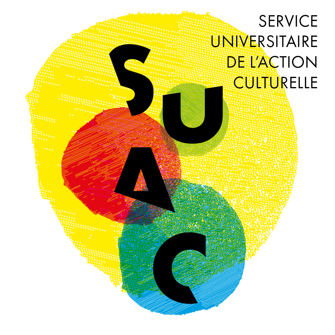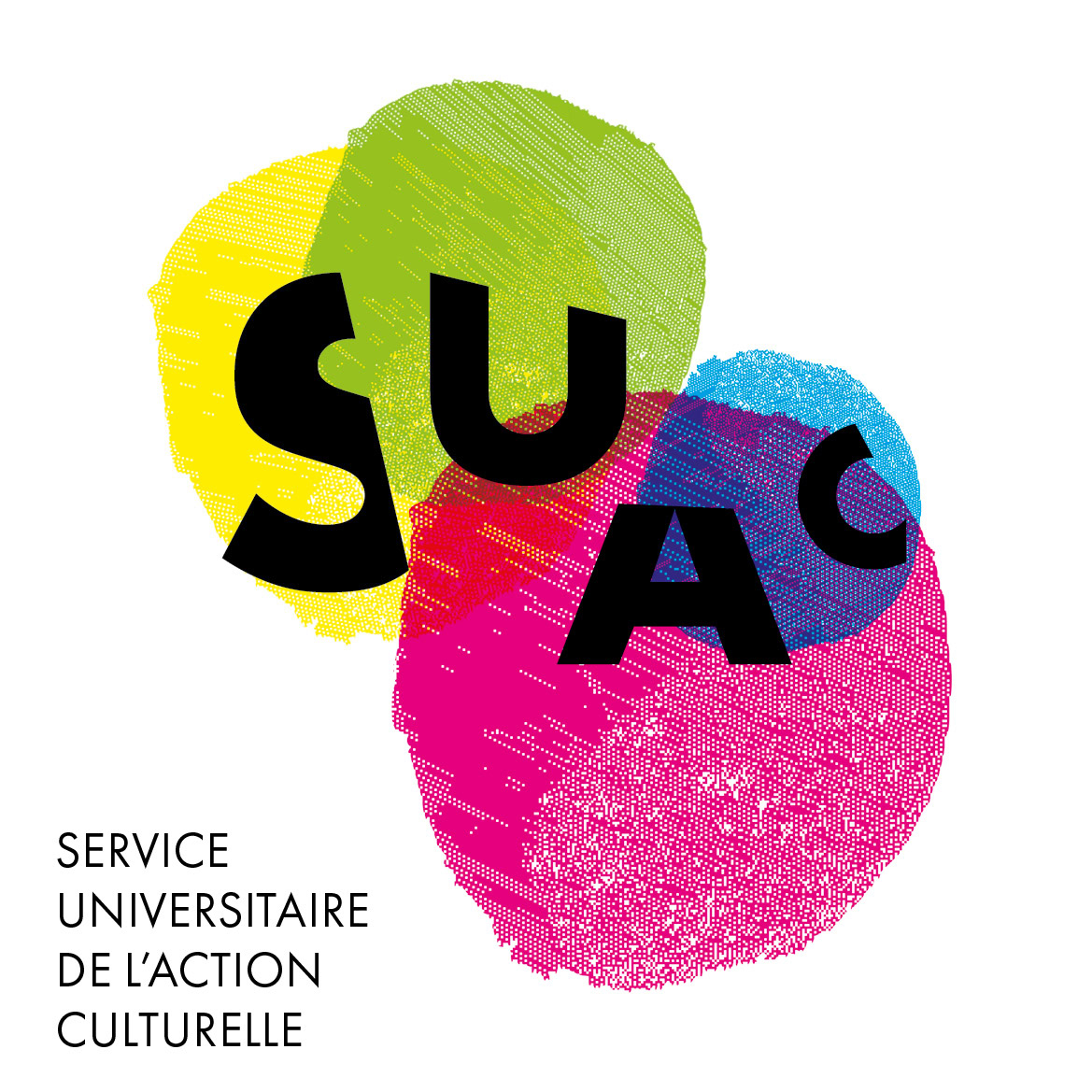 Pour le Service Universitaire de l’Action Culturelle (SUAC) de l’Université de Haute‑Alsace, une identité visuelle modulable a été créée autour d’un système de formes colorées et des lettres “S‑U‑A‑C”.